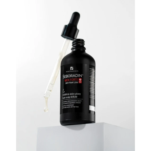 - Serum Seboradin Men Forte polecane jest do pielęgnacji włosów i skóry głowy mężczyzn po zabiegach przeszczepu włosów.