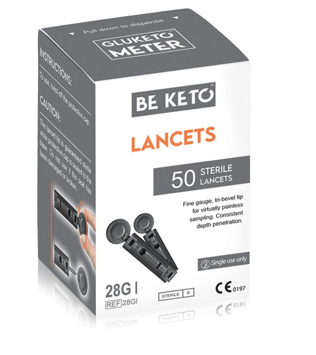 BeKeto GluKeto Meter to zestaw sterylnych lancetów służących do monitorowania poziomu glukozy i ciał ketonowych we krwi. Każde opakowanie zawiera 50 jednorazowych lancetów, które zostały zaprojektowane w taki sposób, aby ich stosowanie było bezpieczne i higieniczne.
