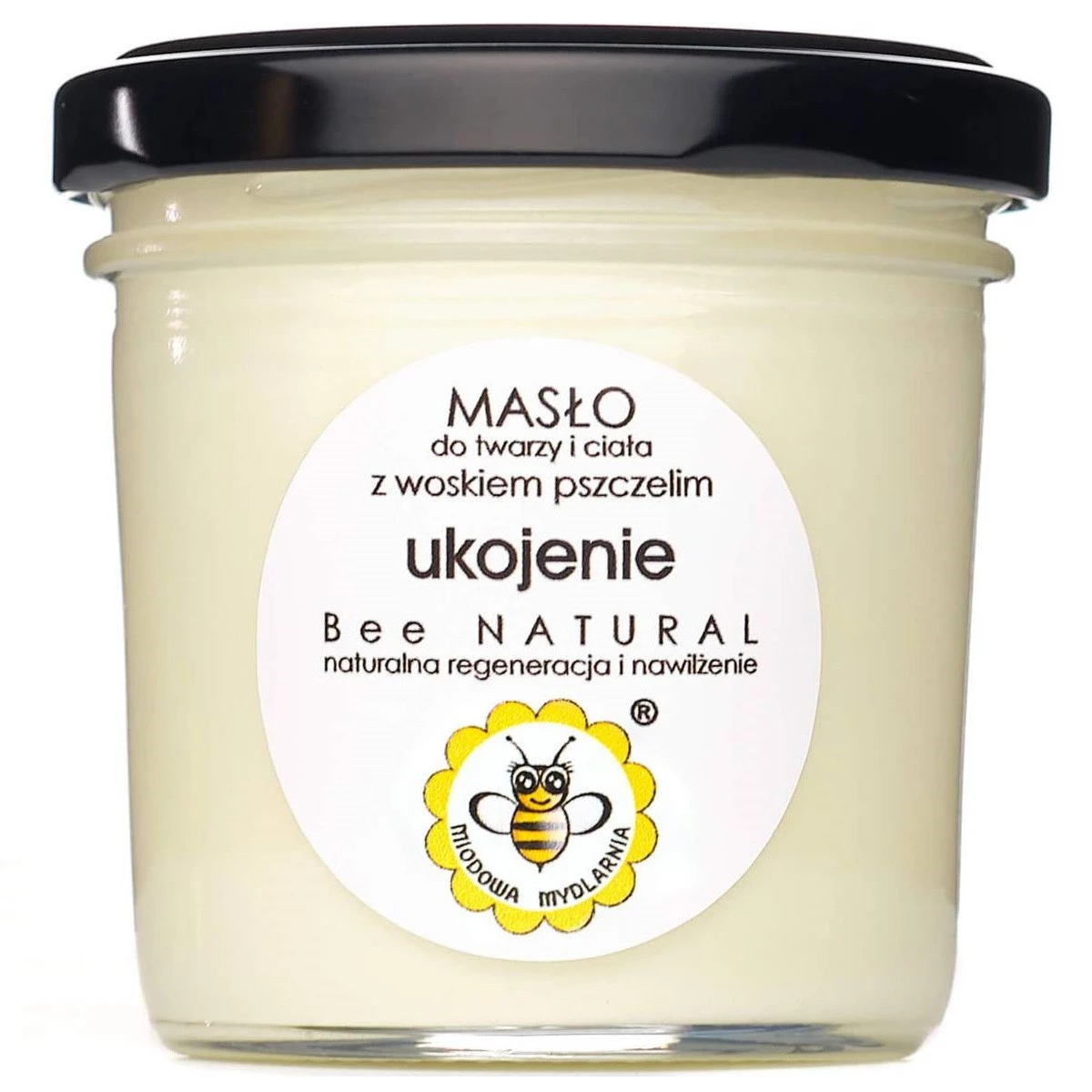 <p>Odżywczo-kojące masło o lekkiej, puszystej konsystencji, na bazie maceratu rumianku w oleju z pestek winogron o znakomitych właściwościach łagodzących. Bardzo delikatne dla delikatnej i wrażliwej skóry.</p><p><b>Nie zawiera dodatkowych aromatów, pachnie naturalnie rumiankiem i oliwą z oliwek.</b></p><p>Idealne masło dla osób szukających naturalnego kosmetyku o intensywnym działaniu kosmetycznym, które szybko i skutecznie natłuści, nawilży i ukoi skórę. Oprócz oleju rumiankowego, masło skomponowane jest z głęboko odżywczych, rewitalizujących skórę tłuszczy: masła shea, oleju kokosowego, oliwy z oliwek i oleju z awokado. Nawilżająco-regenerująco-ochronny wosk pszczeli oraz przeciwstarzeniowa i przeciwzmarszczkowa witamina E są wspaniałym dopełnieniem receptury tego masła.</p><p>Masło łatwo rozpuszcza się pod wpływem temperatury ciała, doskonale wchłania się w skórę, nie pozostawia bardzo tłustej warstwy, długo utrzymuje się w głębszych warstwach skóry.</p><p>Masło wspaniale sprawdzi się w codziennej pielęgnacji skóry delikatnej i wrażliwej, a także suchej, wiotkiej, starzejącej się, wymagającej odnowy. Polecane jest zawsze wtedy, gdy skóra potrzebuje pomocy i ukojenia.</p><p><b>EFEKT: </b>Skóra jest intensywnie wypielęgnowana, odpowiednio natłuszczona i nawilżona, wyraźnie gładsza, ukojona, milsza w dotyku.</p><p><b>B e e NATURAL. Tylko naturalne składniki.</b></p><p><b>Kwiaty rumianku<br></b>Zawierają substancje, które rzadko występują w świecie roślin. Rumianek zawiera przede wszystkim wyjątkowo dużą ilość (nawet do 1,5 proc.) olejku eterycznego bogatego w związki o specyficznych właściwościach leczniczych, m.in. działający przeciwalergicznie chamazulen, a także alfa-bisabolol i jego tlenki. W kwiatach są również flawonoidy, spiroeter, fenolokwasy, fitosterole, poliacetyleny, garbniki katechinowe, gorycze, związki kumarynowe i śluzowe, cholina, witamina C i liczne sole mineralne. Właśnie tej różnorodności składników rumianek zawdzięcza opinię jednej z najcenniejszych roślin leczniczych. W kosmetyce, rumianek jest cenny, przede wszystkim, ze względu na swoje niezwykłe właściwości łagodzące. Mało która roślina jest tak idealna do cery podrażnionej, wrażliwej i delikatnej. Ponadto: zmniejsza obrzęki, zmiękcza i ujędrnia skórę, delikatnie ją oczyszcza i odświeża, poprawia też koloryt skóry, delikatnie ją wybielając.</p><p><b>Olej z pestek winogron<br></b>Zawiera bardzo dużo nienasyconych kwasów tłuszczowych (szczególnie dużo kwasu linolenowego), które chronią przed utratą wody, ułatwiają wchłanianie substancji odżywczych, zapobiegają przedwczesnemu starzeniu się skóry, odżywiając i regenerując ją. Dodatkowo posiada właściwości łagodzące podrażnienia, więc może być stosowany nawet przy bardzo wrażliwej cerze. Z uwagi na wysoką zawartość witaminy E, poprawia jędrność i napięcie skóry. Masło shea, zwane masłem życia, intensywnie odżywia i regeneruje skórę, pozostawiając na niej ochronny płaszcz lipidowy. Pomaga zachować wilgoć i zmniejszyć utratę wody, zapobiegając przesuszeniu i łuszczeniu się skóry, a tym samym poprawiając jej elastyczność. Pomaga też redukować zmarszczki wywołane m. in. przesuszeniem naskórka.</p><p><b>Olej kokosowy<br></b>Zawiera przede wszystkim duże ilości kwasu laurynowego, który wykazuje silne działanie przeciwbakteryjne, a także wiruso- i grzybobójcze, olej znakomicie nadaje się więc do zwalczania infekcji, wysypek i egzem, pomaga w leczeniu drobnych skaleczeń i mikrourazów skóry oraz łagodzi świąd i ból po ukąszeniach owadów. Zawiera także naturalne antyoksydanty, spowalniając tym samym procesy starzenia się skóry, sprawiając jednocześnie, że staje się ona jędrna i elastyczna. Kwasy tłuszczowe zawarte w oleju kokosowym głęboko penetrują i odżywiają skórę, w rezultacie czego doskonale ją nawilżają, poprawiają sprężystość, wygładzają.</p><p><b>Oliwa z oliwek<br></b>Wykazuje działanie kojące, łagodzące, wzmacnia naturalną odporność skóry, likwiduje jej szorstkość. Doskonale odżywia, nawilża oraz regeneruje skórę, opóźnia objawy starzenia. Posiada dobroczynne działanie ochronne przed czynnikami zewnętrznymi, uzupełniając wszelkie niedobory lipidowe. Wyjątkowe właściwości oliwy powodują, że skóra pod jej działaniem staje się gładka, miękka i odświeżona. Witaminy w niej zawarte z łatwością przenikają w głąb skóry, nadając jej zdrowy i promienny wygląd. Zawarta w oliwie stosunkowo wysoka dawka witaminy F, chroni skórę przed nadmierną utratą wilgoci. Ponadto, oliwa jest bogatym źródłem antyoksydantów, których obecność zapewnia skórze młodość i witalność</p><p><b>Witamina E<br></b>Posiada silne właściwości antyoksydacyjne - dodawana do kosmetyków hamuje procesy starzenia się skóry, związane z niszczącym działaniem aktywnych form tlenu (wolne rodniki). Działa jako tzw. ''wymiatacz wolnych rodników'' (których powstawanie jest w dużym stopniu indukowane promieniowaniem UV), chroniąc i zapobiegając w ten sposób uszkodzeniom błony komórkowej i przedwczesnemu starzeniu się skóry. Witamina E ma także działanie przeciwzapalne - przyspiesza gojenie się ran i skutecznie wpływa na odtwarzanie się nowej tkanki. Ponadto chroni przed wysuszeniem, poprawia gospodarkę wodną naskórka, jego miękkość i elastyczność.</p><p><b>Wosk pszczeli<br></b>Jest bogaty w biologicznie czynne substancje, których idealna kompozycja pozwala na skuteczną pielęgnację nawet najwrażliwszych typów skóry. Zawiera proteiny, lipidy, węglowodany, witaminy, sole mineralne, mikroelementy. Wykazują one działanie nawilżające, natłuszczające, regenerujące i ochronne. Wosk zapobiega wysuszaniu skóry, uelastycznia i zmiękcza ją oraz nie pozwala na utratę wody przez naskórek.</p><p><b>Ol
