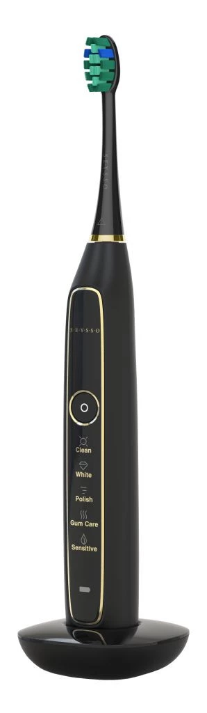 Wyjątkowo szybkie ruchy wymiatające włókien szczoteczki powodują powstawanie tysięcy mikrobąbelków, które dystrybuują składniki pasty oraz tlen nawet w trudno dostępne przestrzenie międzyzębowe. Dzięki zwiększonej intensywności drgań szczoteczka soniczna SEYSSO Gold Black jest jeszcze skuteczniejsza w walce z płytką bakteryjną i osadem nazębnym.