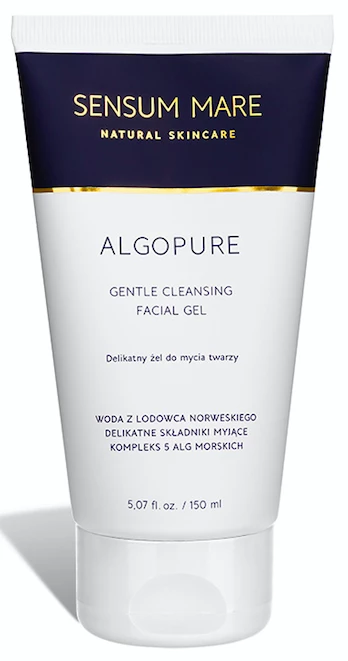 - Sensum Mare - Algopure delikatny żel do mycia twarzy - żel skutecznie oczyszczający skórę z sebum i zanieczyszczeń z zawartymi delikatnymi składnikami myjącymi. Głównym składnikiem myjącym jest decyl glucoside, który delikatnie myje skórę.