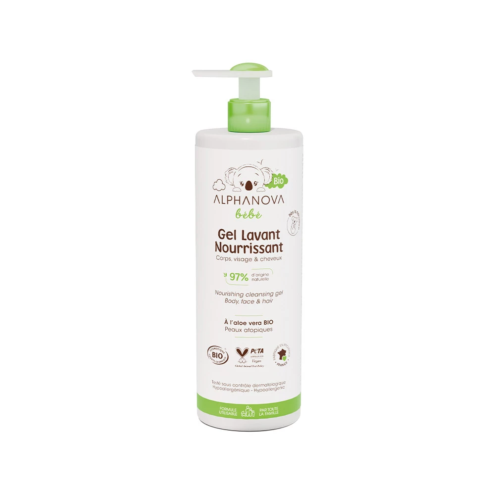 Alphanova Bebe Bio, Odżywczy żel myjący do ciała, twarzy i włosów dla niemowląt, 400ml
