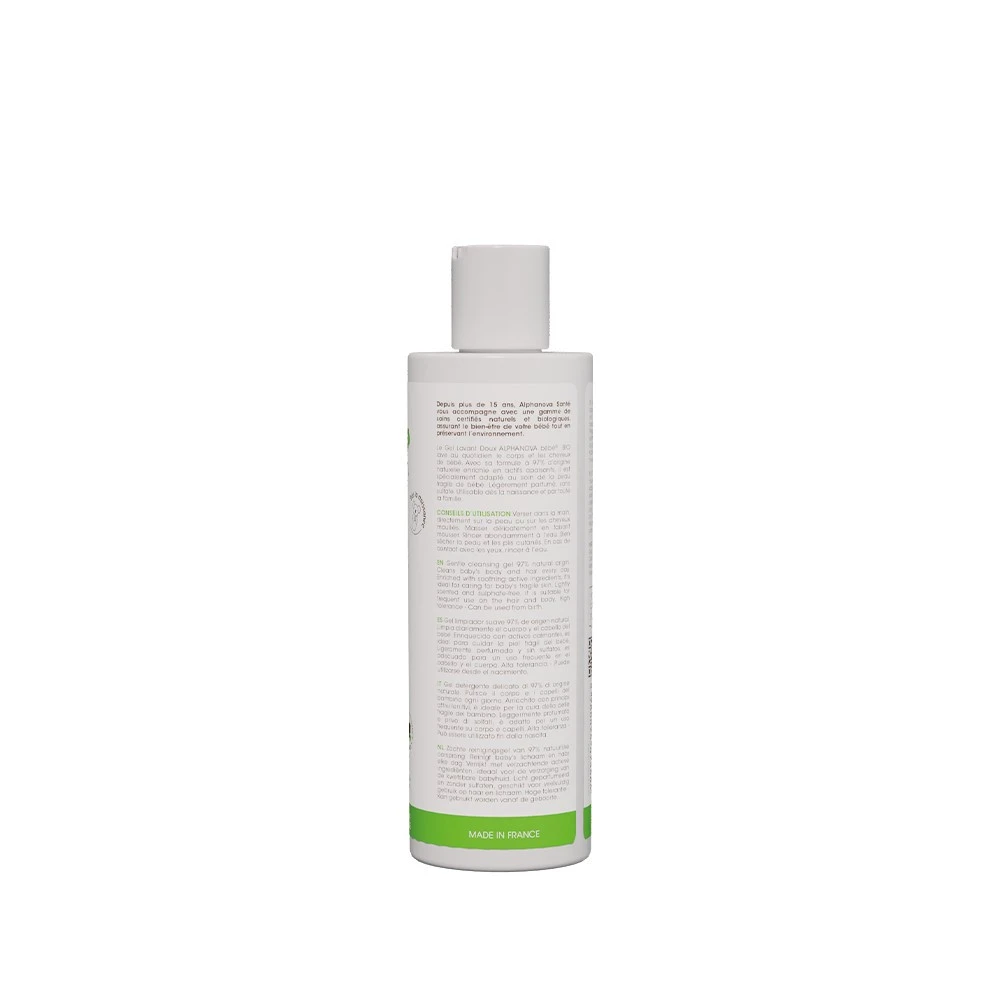 Szukasz delikatnego produktu do codziennego mycia ciała i włosów Twojego noworodka od 1. dnia życia? Wypróbuj delikatny żel myjący ALPHANOVA bébé® BIO bez mydła, parabenów i siarczanów, dzięki któremu skóra Twojego dziecka będzie czysta i miękka.