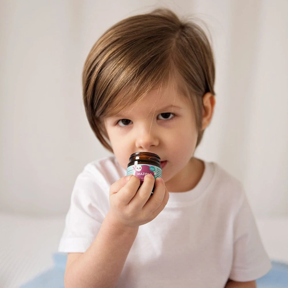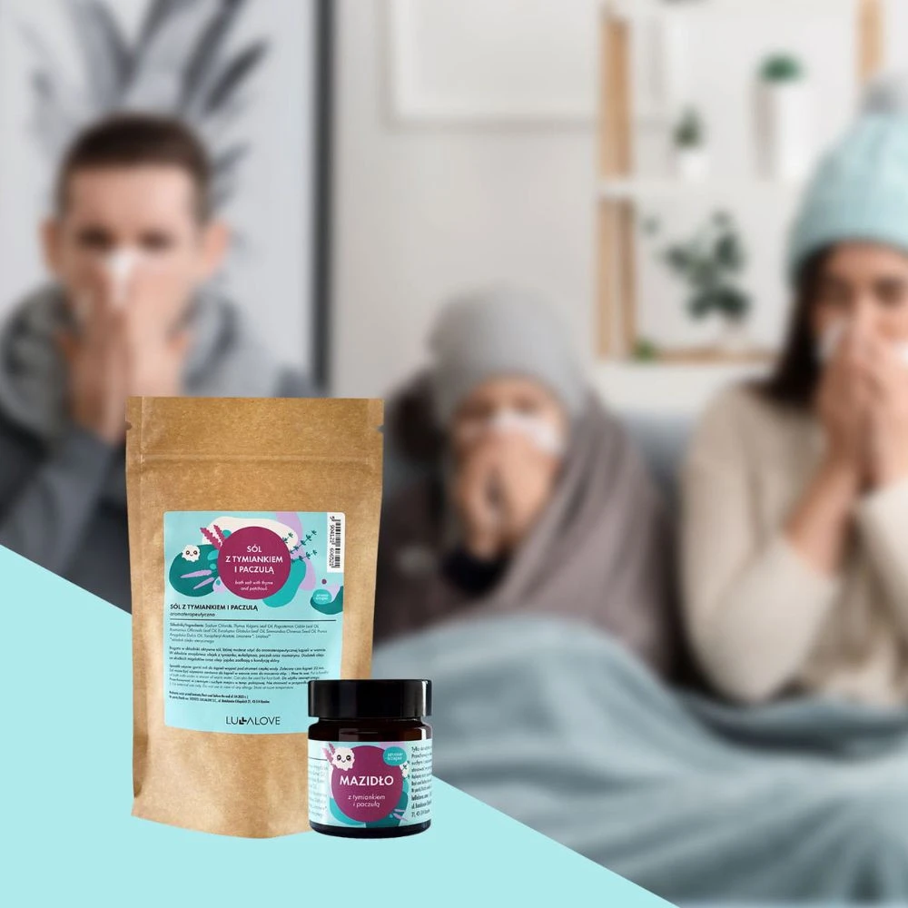To ziołowe mazidło do nacierania klatki piersiowej, pleców oraz stóp sprawdzi się w okresie kiedy pogoda daje się we znaki, a w mediach słyszymy jedynie newsy o infekcjach i sporą część budżetu zostawiamy w aptece. Ma formę gęstego balsamu, która po kontakcie z ciepłą skórą, uwalnia aromat naturalnych olejków eterycznych. Zapach jak bardzo przyjemny, a olejek z paczuli pomoże Ci ukoić mocne emocje, jeśli posmarujesz tą maścią nadgarstki. Z uwagi na lanolinę i wosk pszczeli, pomoże pielęgnacyjnie na okolice nosa podrażnione przy katarze. Może być stosowane u osób dorosłych oraz dzieci od 3 roku życia.