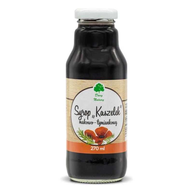 - Syrop "Kaszelek" makowo - tymiankowy 270ml. Naturalny syrop stworzony na bazie płatków maku z delikatnie wyczuwalną nutą tymianku.