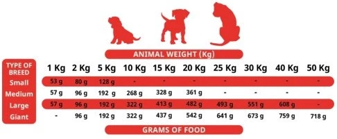 Dzienna porcja zależy od masy ciała i aktywności szczenięcia. Zawsze zapewnij dostęp do świeżej wody.