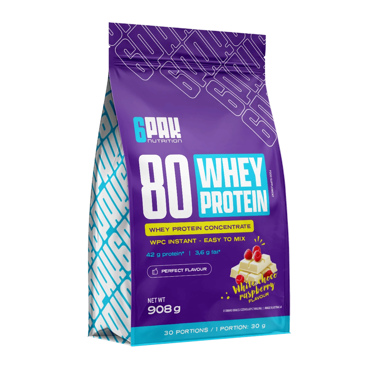 - 6PAK 80 Whey Protein to wyjątkowa odżywka białkowa, dostarczająca wysokiej jakości protein o dobrym przyswajaniu i wchłanialności. Zaletą tego produktu jest jego pyszny, aromatyczny smak białej czekolady z malinami.