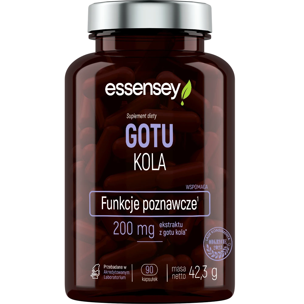 - Essensey Gotu Kola to suplement diety, który świetnie sprawdzi się dla osób aktywnych. Oparty na ekstrakcie z Centella asiatica, znanej jako Gotu Kola, produkt tez zyskał na popularności wśród zwolenników holistycznego dbania o zdrowie.