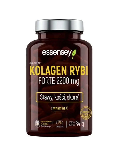 Produkt ESSENSEY KOLAGEN RYBI FORTE 2200mg 120 kaps ESSENSEY to suplement diety. Nie może być stosowany jako substytut zróżnicowanej diety. Pamiętaj o zrównoważonym sposobie żywienia i zdrowym trybie życia.- Przechowuj w chłodnym miejscu, z dala od bezpośredniego światła słonecznego.