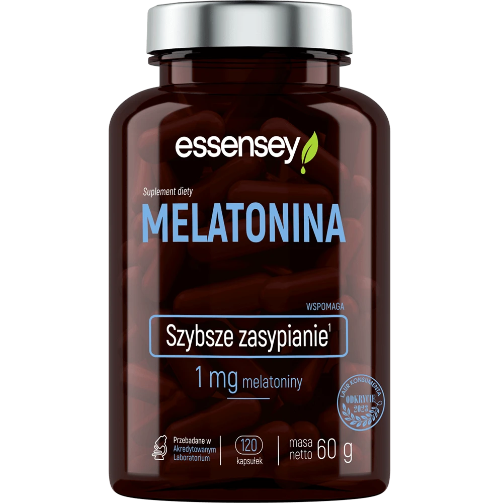 Produkt Essensey Melatonina na spokojny sen 120 kaps. ESSENSEY to suplement diety. Nie może być stosowany jako substytut zróżnicowanej diety. Pamiętaj o zrównoważonym sposobie żywienia i zdrowym trybie życia.- Przechowuj w chłodnym miejscu, z dala od bezpośredniego światła słonecznego.