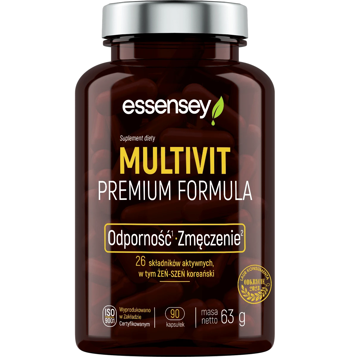 Produkt Essensey Multivit Premium Formula na odporność i zmęczenie 90 kaps. ESSENSEY to suplement diety. Nie może być stosowany jako substytut zróżnicowanej diety. Pamiętaj o zrównoważonym sposobie żywienia i zdrowym trybie życia.