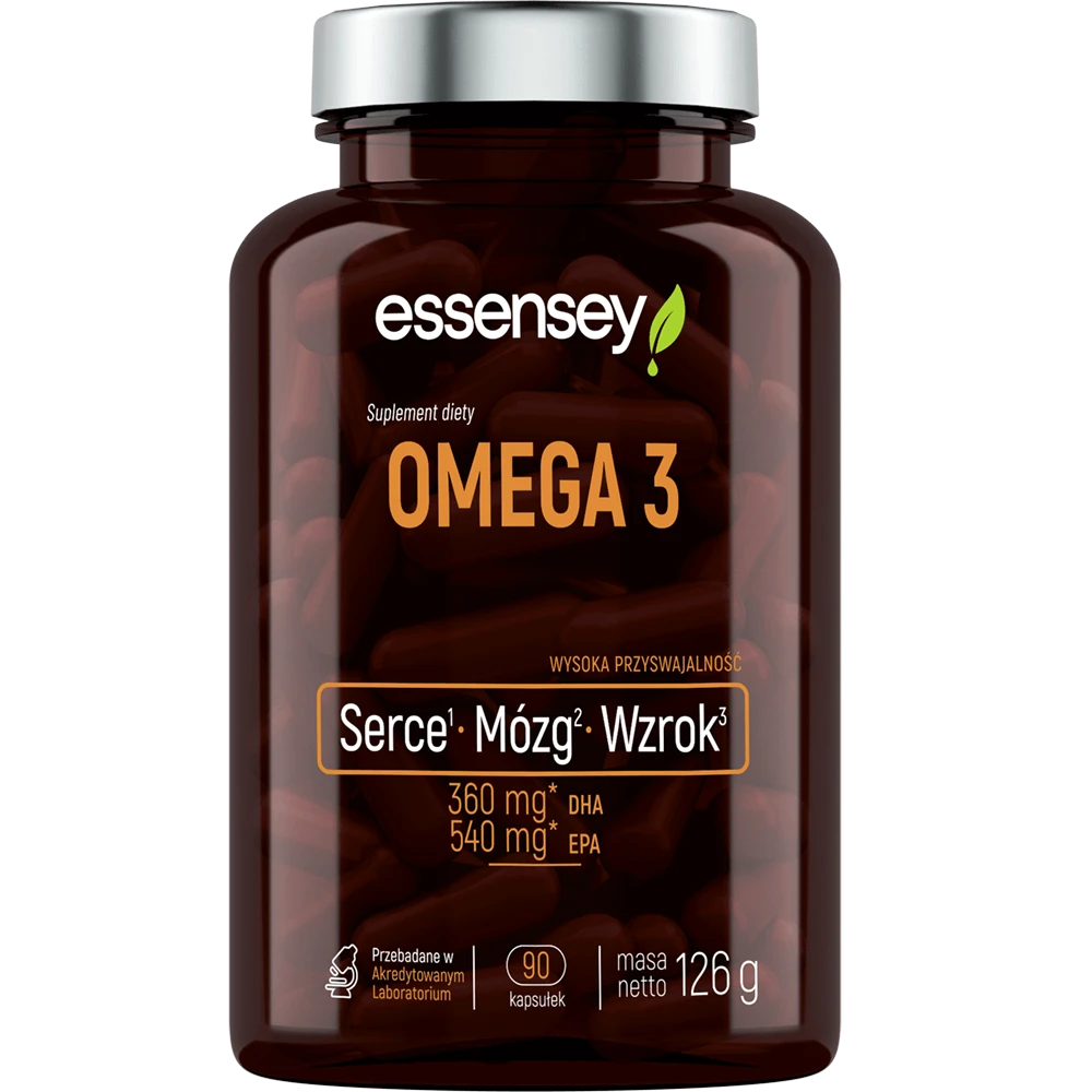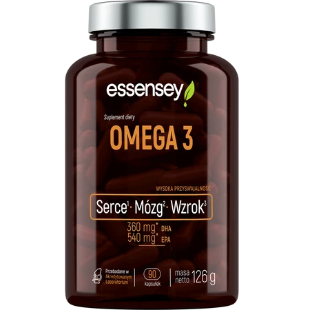 Produkt ESSENSEY OMEGA 3 90cap ESSENSEY to suplement diety. Nie może być stosowany jako substytut zróżnicowanej diety. Pamiętaj o zrównoważonym sposobie żywienia i zdrowym trybie życia.