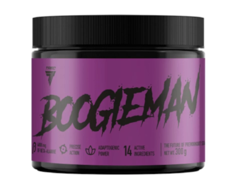 - Trec Boogieman to skoncentrowany booster przedtreningowy stworzony z myślą o sportowcach i osobach aktywnych fizycznie. Produkt jest idealnym rozwiązaniem dla tych, którzy szukają skutecznego wsparcia przed wymagającymi treningami i zawodami.
