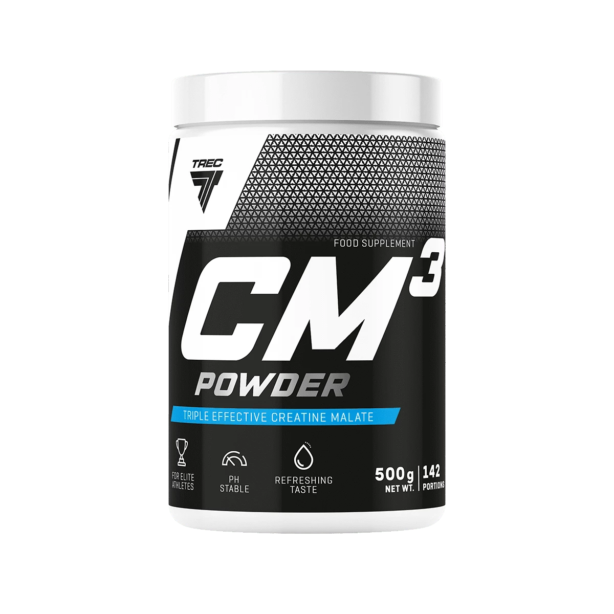 Suplement diety Trec CM3 to wysokiej jakości produkt, który stanowi źródło kreatyny w bardzo dobrze przyswajalnej przez organizm formie jabłczanu kreatyny. Trec CM3 przeznaczony jest dla osób intensywnie trenujących siłowo i oporowo, które chcą w szybki, bezpieczny i skuteczny sposób zbudować solidną masę mięśniową.