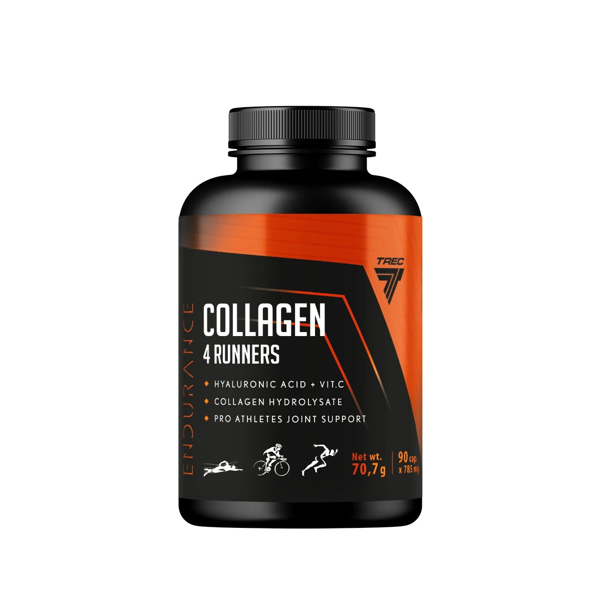 - TREC Endurance Collagen 4 Runners to suplement diety w kapsułkach, stworzony z myślą o biegaczach i sportowcach narażonych na intensywne obciążenia stawów. Zawiera hydrolizat kolagenu oraz kwas hialuronowy, które wspierają regenerację stawów.
