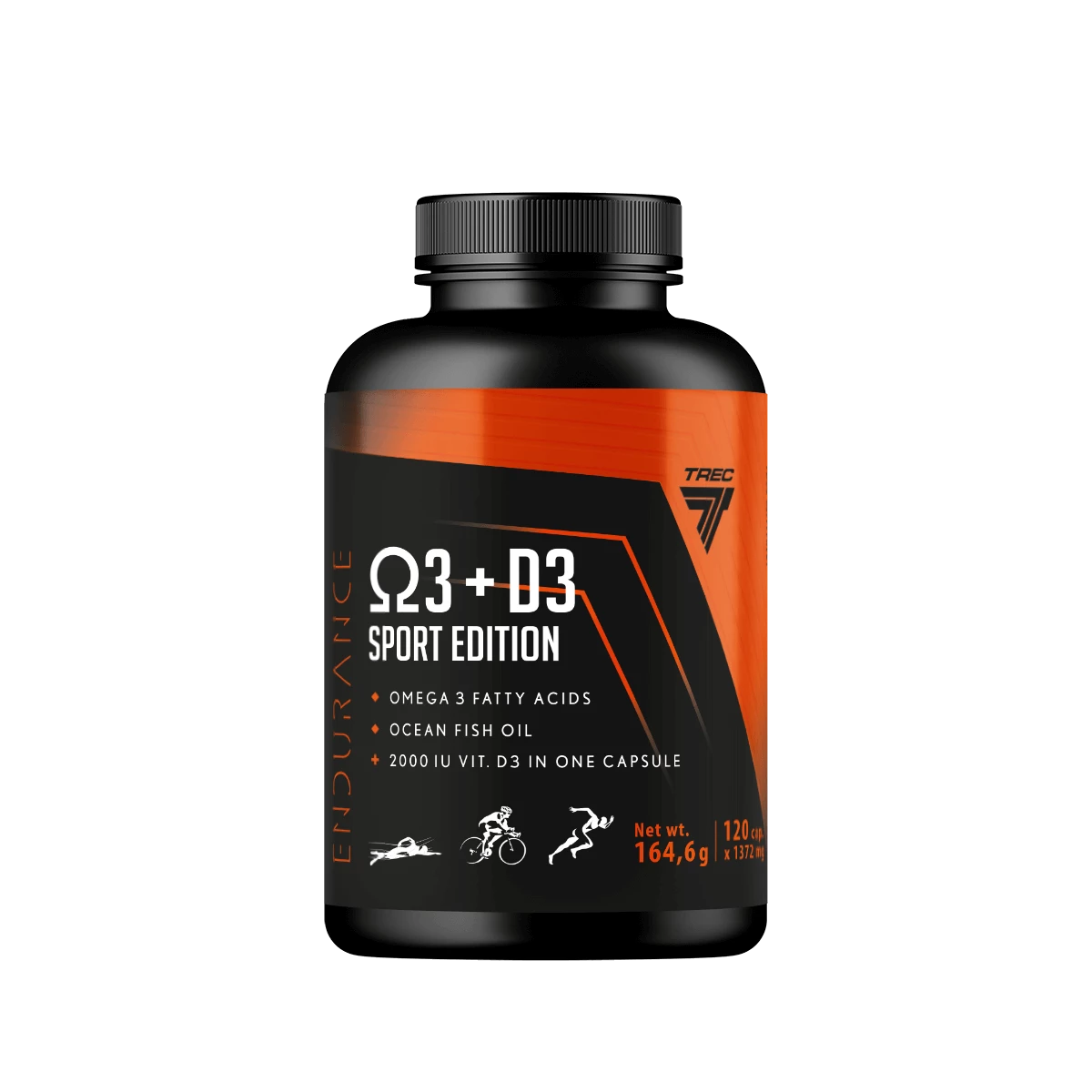- OMEGA-3 + D3 SPORT EDITION to suplement diety stworzony z myślą o sportowcach wytrzymałościowych. Zawiera wysokiej jakości olej rybi bogaty w kwasy EPA i DHA oraz witaminę D3. Połączenie tych składników wspiera prawidłowe funkcjonowanie serca, mięśni.