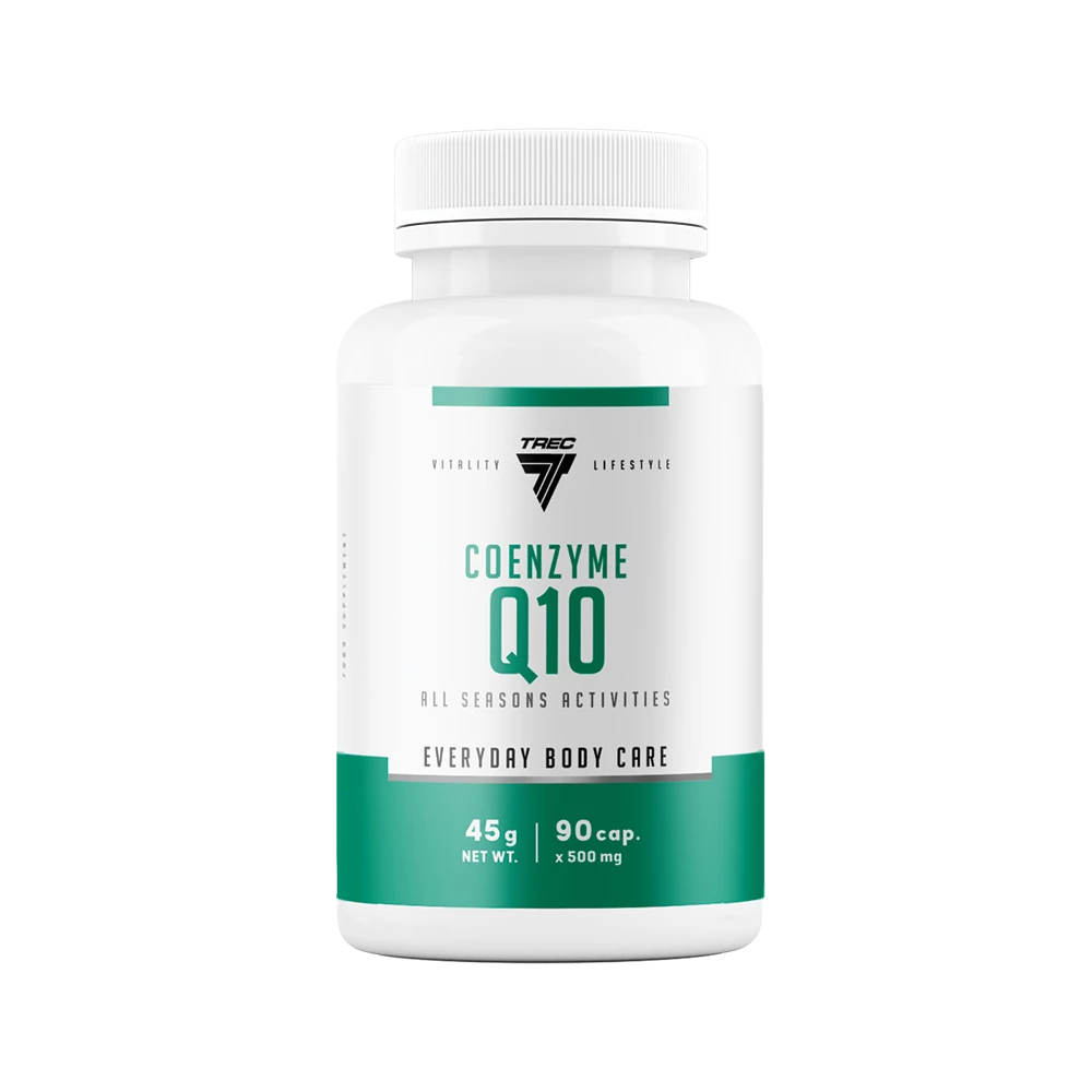 - TREC Coenzyme Q10 to wysokiej jakości suplement diety w kapsułkach, zawierający koenzym Q10 – składnik niezbędny do prawidłowego funkcjonowania każdej komórki. Wspiera metabolizm energetyczny, układ krążenia oraz chroni komórki przed stresem oksydacyjnym.