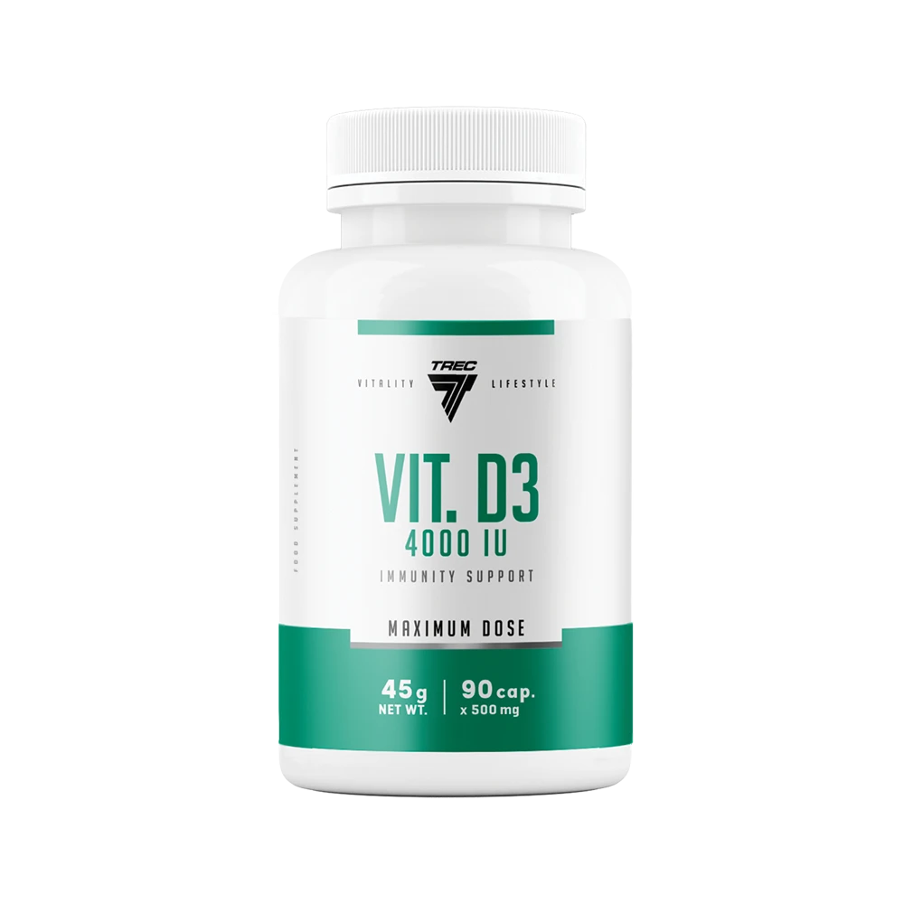 Produkt Trec Vitality Vitamina D3 4000 IU - 90 kaps. VITALITY to suplement diety. Nie może być stosowany jako substytut zróżnicowanej diety. Pamiętaj o zrównoważonym sposobie żywienia i zdrowym trybie życia.
