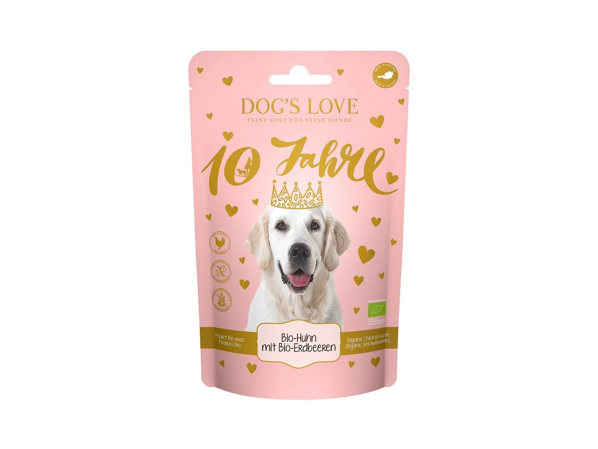 Jubileuszowa edycja limitowana przysmaków z okajzi 10-lecia marki DOG'S LOVE. Wyśmienite chipsy jubileuszowe rozpieszczają czworonożnych przyjaciół ekologicznym mięsem kurczaka i dojrzewającymi w słońcu ekologicznymi truskawkami. Toidealne przysmaki dla psa w każdym wieku i każdej rasy.