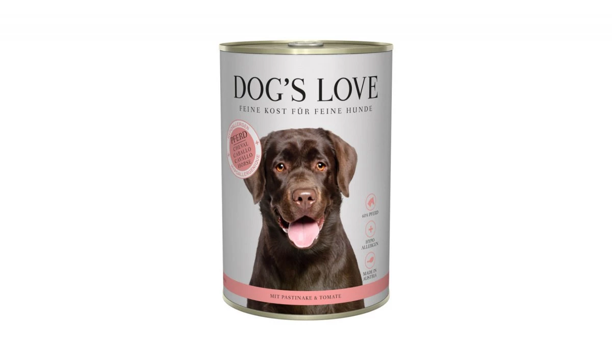 Karma mokra hipoalergiczna DOG'S LOVE Pferd została opracowana przez lekarzy weterynarii i jest dostosowana do potrzeb psów z nietolerancją pokarmową lub alergią. Zminimalizowana lista składników zmniejsza ryzyko wystąpienia alergii czy nietolerancji. Źródłem kwasów tłuszczowych Omega 3 w karmie jest olej lniany, dzięki czemu można ją z powodzeniem stosować u psów uczulonych na ryby i oleje rybie.