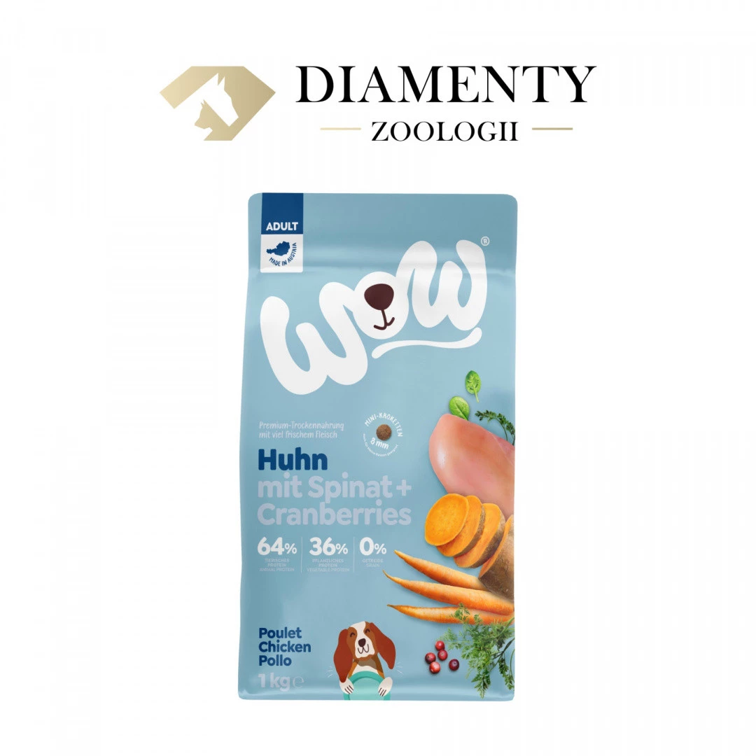 WOW MINI Huhn - kurczak ze szpinakiem i żurawiną dla dorosłych psów małych ras (1kg)