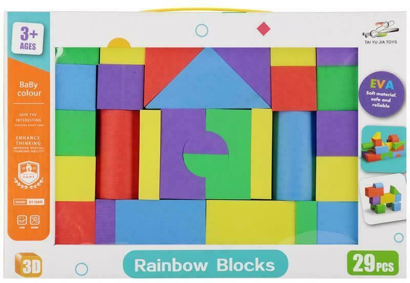 - zestaw klocków konstrukcyjnych wykonanych z miękkiej pianki, składający się z 29 elementów,