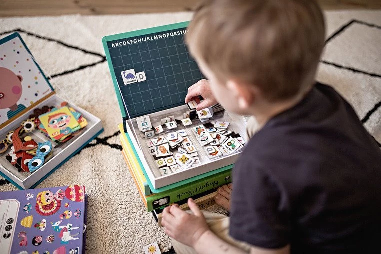 Magnetyczna układanka Magnetibook francuskiej marki JANOD to doskonała zabawka, rozwijająca kreatywność i wyobraźnię. Zabawa polega na układaniu na planszy magnesów, które dziecko może dowolnie łączyć we wzory. Układanka będzie służyć przed długi czas i nieprędko się znudzi, bo daje wiele możliwości kreacji. Jest pięknie wykonana, co dodatkowo rozbudza zmysł artystyczny, a ponadto ćwiczy logiczne myślenie oraz sprawność manualną u dziecka.