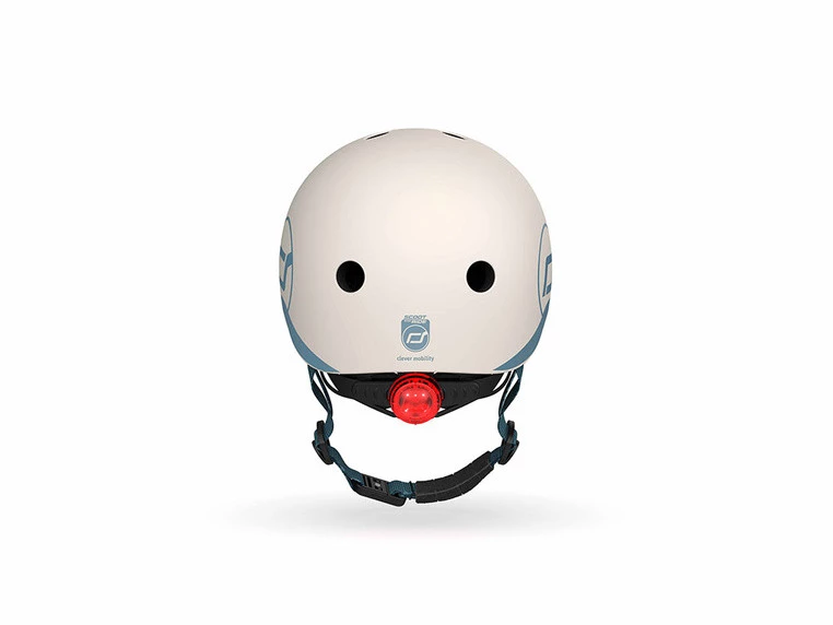 - kask jest spójny kolorystycznie z pastelową kolekcją Highwaykick 1 – po bokach beżowoszarej skorupy (w kolorze Ash), znajdują się niebieskie (w kolorze Steel) grafiki z logo Scoot&Ride, w tym samym kolorze są również taśmy regulujące