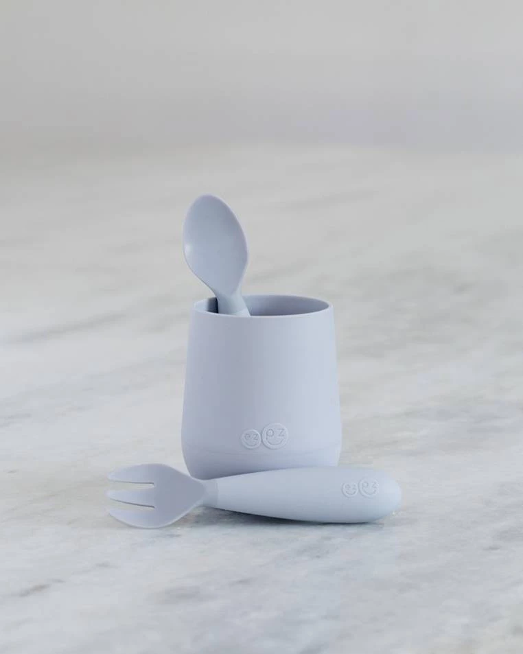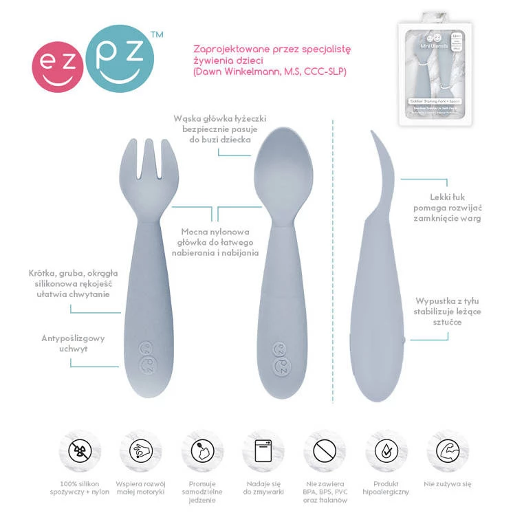 EZPZ Komplet silikonowych sztućców Mini Utensils pastelowa szarość