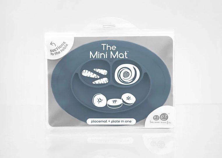 Mini Mat amerykańskiej marki EZPZ (czyt. izipizi) to nieduża, poręczna podkładka i trójdzielny talerzyk w jednym, stworzony z najbezpieczniejszego silikonu. Pasuje do większości blatów krzesełek do karmienia. Dzięki zamykanemu opakowaniu, jest to idealne rozwiązanie na podróż.