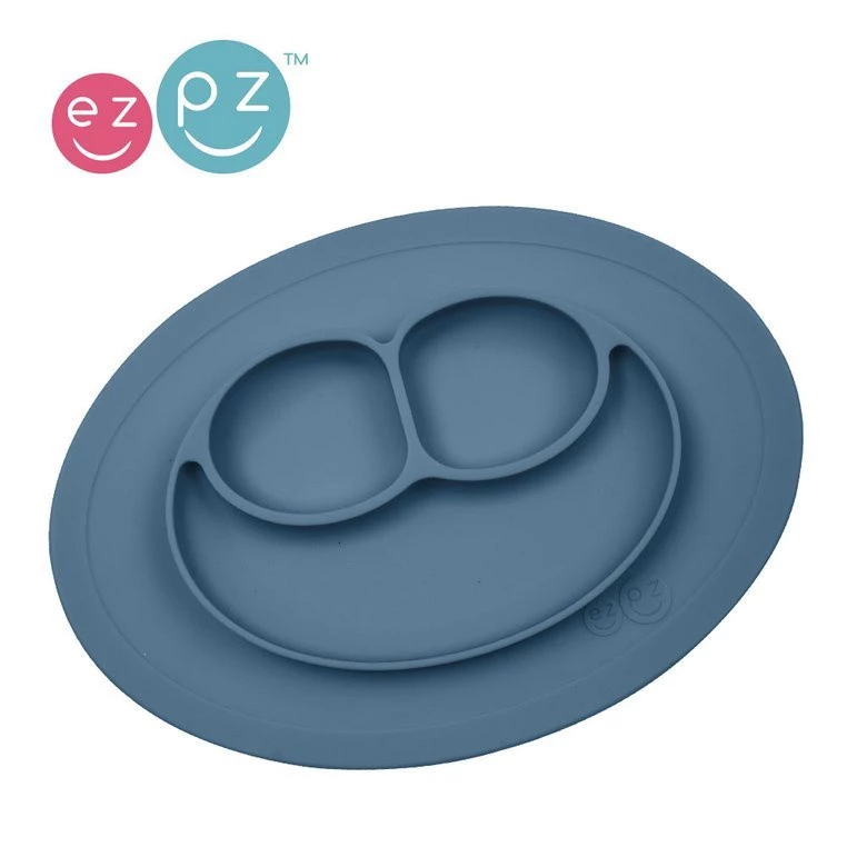 EZPZ Silikonowy talerzyk z podkładką mały 2w1 Mini Mat ciemny niebieski