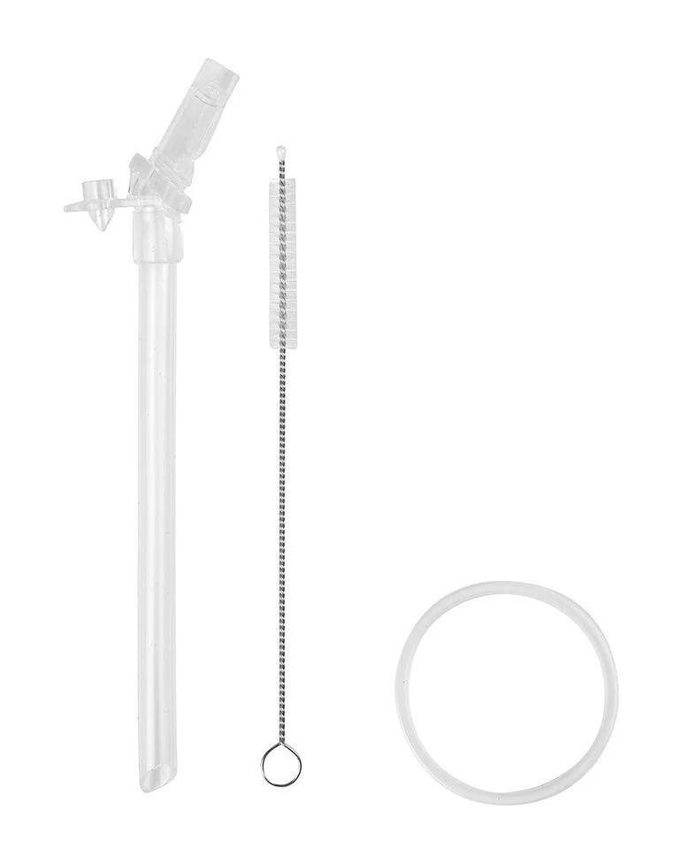 Zestaw składa się z wymiennej silikonowej słomki, czyścika do słomki i uszczelki. Słomka jest profilowana, dzięki czemu ułatwia dziecku wygodne samodzielne picie. Bezproblemowo można ją założyć i wyjąć, np. do mycia, a transparentność gwarantuje wysoką higienę użytkowania.