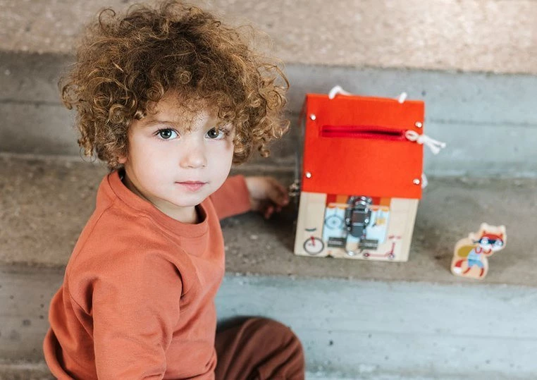 Drewniany domek manipulacyjny Lisek Włamywacz belgijskiej marki Lilliputiens to niebanalne wielofunkcyjne źródło rozrywki i nauki dla ciekawskich maluszków. Na każdej ścianie i dachu domku znajdują się drzwi, zamykane na 6 różnych rodzajów zapięć i metalowych zamków: suwak i zapięcie na rzep w dachu (wykonanym z solidnej tkaniny, przypiętej do ścian domku na napy) oraz kluczyk, zasuwka, zapadka i haczyk w drzwiczkach na kolejnych ścianach domku. Każde z tych drzwiczek prowadzą do innego sklepiku: rowerowego, cukierni, jubilera i spożywczego. Do zestawu dołączona jest też drewniana figurka cwanego lisa - włamywacza. Zabawka jest solidnie wykonana i bezpieczna. Pomalowana bezpiecznymi farbami na bazie wody. Zaskakuje i pobudza dziecięcą wyobraźnię. Rozwija koordynację ręka-oko oraz małą motorykę (otwieranie, zamykanie, przesuwanie, przeciąganie, wkładanie, wyjmowanie), a dzięki postaci liska – zachęca do snucia opowieści. Może się stać świetnym pretekstem do rozmowy o zasadach bezpieczeństwa.