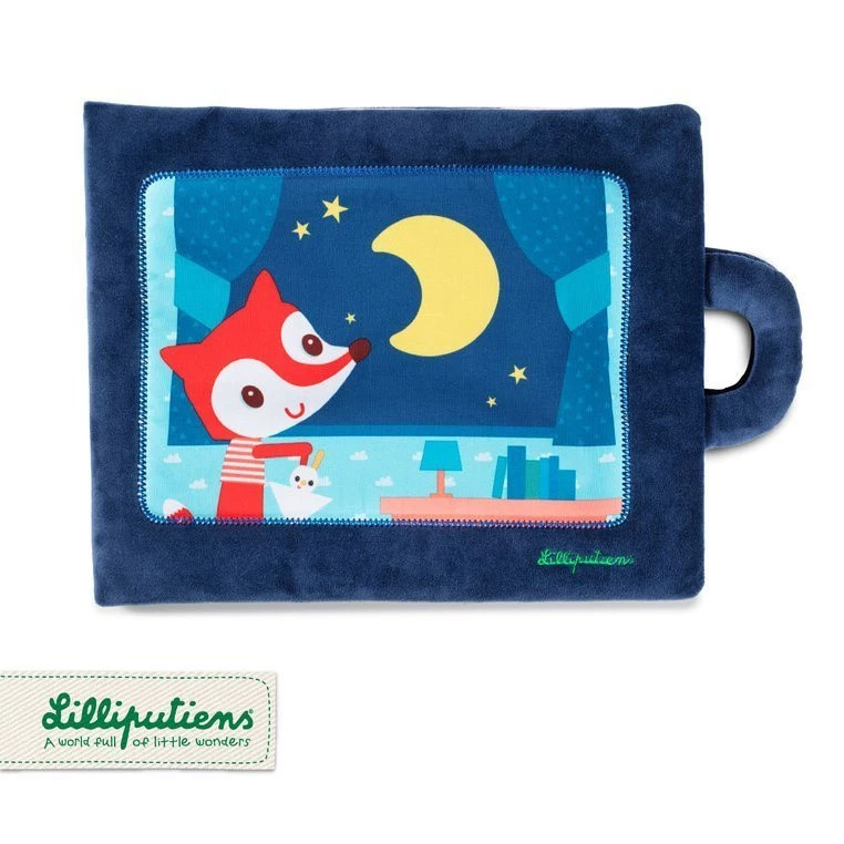 LILLIPUTIENS Miękka książeczka aktywizująca z mini-przytulanką „Dobranoc, mały lisku” 18 m+