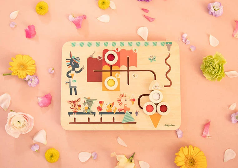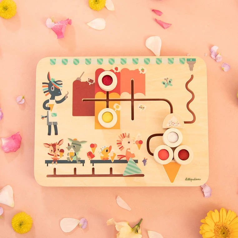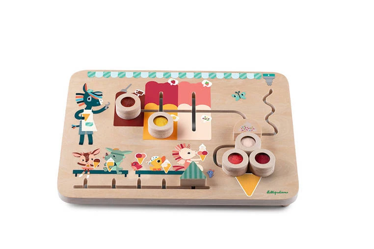 LILLIPUTIENS Drewniana tablica labirynt sensoryczny Lodziarnia 18 m+
