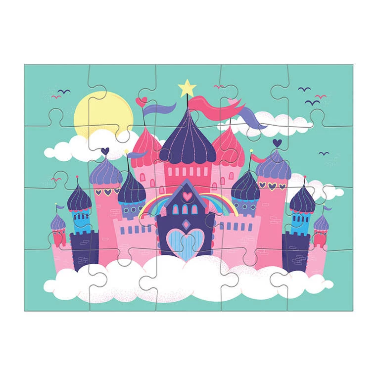 Puzzle progresywne Magia jednorożców amerykańskiej marki MUDPUPPY to zestaw 4 układanek o różnym stopniu trudności dla dzieci od 3. roku życia. Puzzle liczą sobie kolejno więcej elementów – 16, 20, 24 i 28, dzięki czemu dzieci stopniowo uczą się radzić sobie z coraz trudniejszymi układankami. Obrazki o rozmiarze 15 x 20 cm każdy, przedstawiają baśniowe ilustracje, m.in. z jednorożcem, motylem, zamkiem na chmurze czy balonami. Gotowe ilustracje można potraktować jako pretekst do snucia barwnych opowieści o krainie magicznych stworzeń. Piękne kolory dodatkowo zachęcają do zabawy.