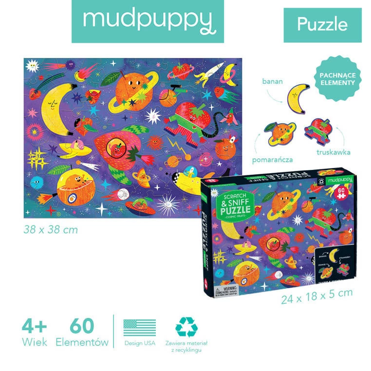 Mudpuppy Puzzle sensoryczne z elementami zapachowymi Kosmiczne owoce 60 elementów 4+