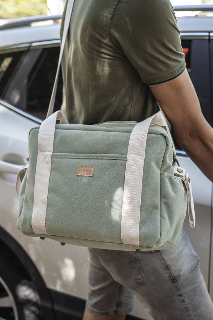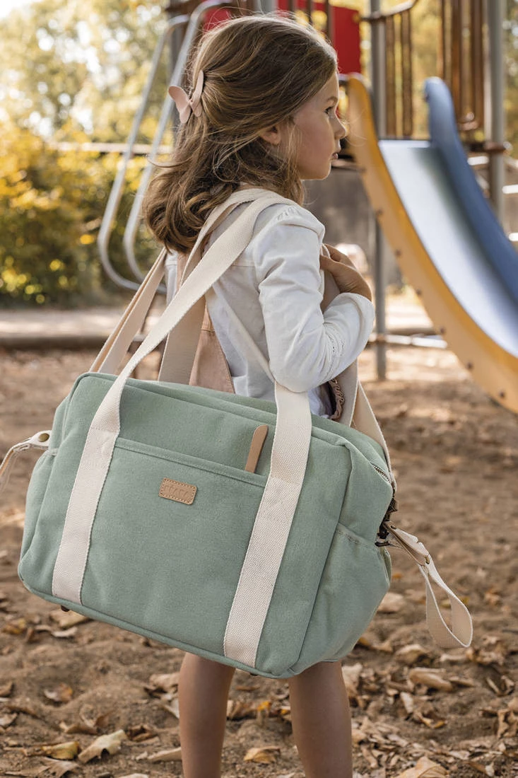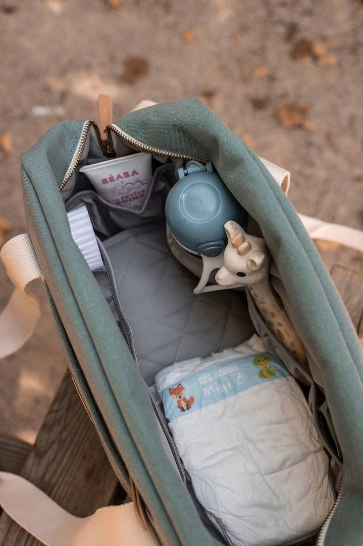 Wysoce funkcjonalna, poręczna i ultralekka torba unisex dla rodziców francuskiej marki BEABA. Pomieścisz w niej bez trudu wszystkie niezbędne dziecięce akcesoria i wygodnie je posegregujesz. Torba utrzymana jest w stonowanej, a przy tym oryginalnej kolorystyce: ma pastelowy szałwiowo-zielony kolor, jasną podszewkę, paski, rączki i suwaki w odcieniu offwhite oraz detale z jasnobeżowej ekoskóry. To doskonałe akcesorium dla rodzica, które ułatwi nie tylko codzienne spacery z maluchem, ale też podróżowanie z nim czy inne przygody. Bez trudu zapakujesz do niej też swoje rzeczy: telefon, notes czy klucze. Przy licznych przegródkach wewnętrznych i zewnętrznych doskonała organizacja nie będzie problemem.