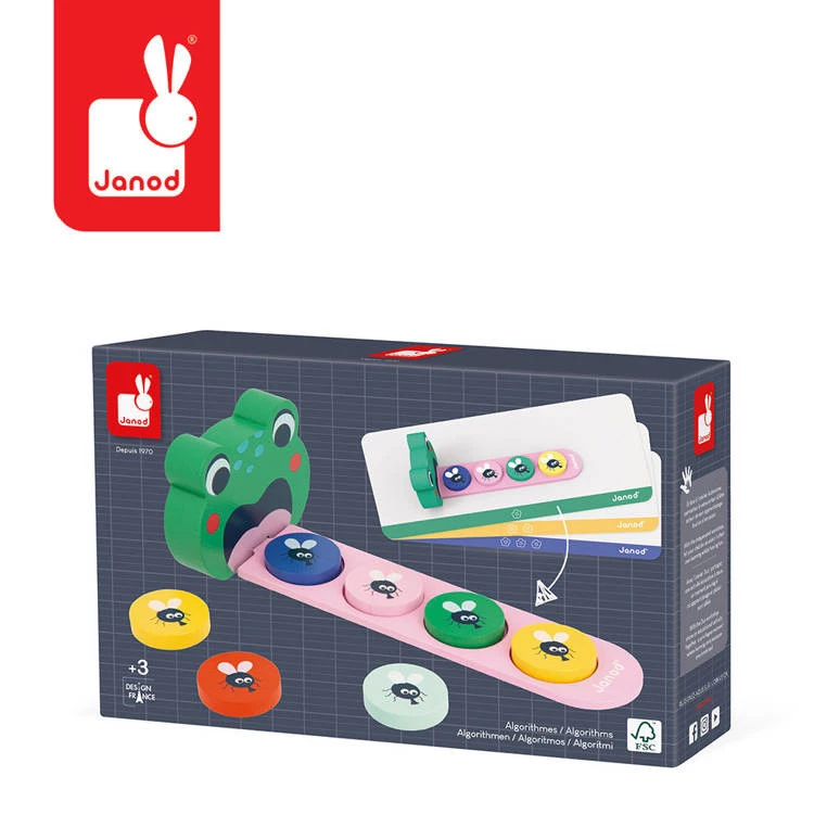Janod Drewniana układanka logiczna Algorytmy Żaba 3+