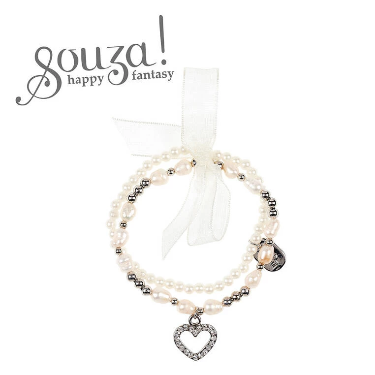 Souza! Potrójna bransoletka z perełkami i serduszkiem biało-srebrna Bliss