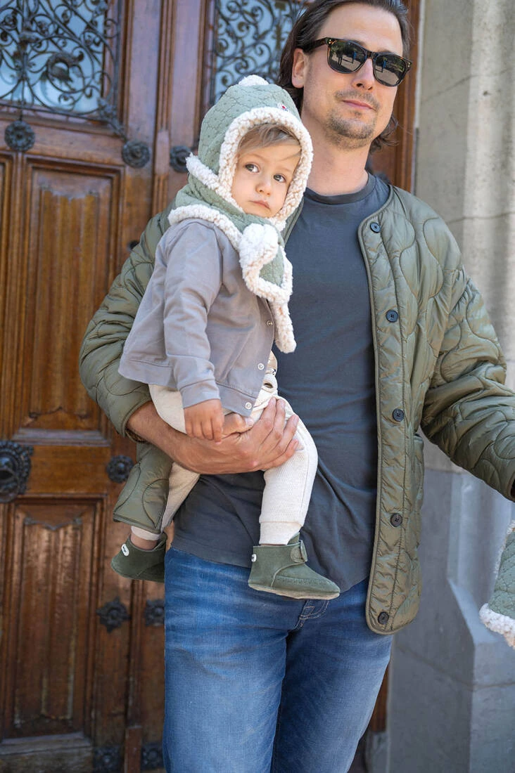 Dwuwarstwowy szaliczek z polaru holenderskiej marki Lodger. Komfortowy i ciepły. Idealny na spacery na świeżym powietrzu, niezależnie od pogody. Warstwa zewnętrzna jest odporna na wilgoć, zapewnia ochronę przed deszczem, wiatrem i zimnem. Warstwa wewnętrzna wykonana została z polaru Sherpa, tj. szczotkowanego ultramiękkiego materiału, który w dotyku przypomina futerko. Szaliczek ma prosty krój i szlufkę do przełożenia jego drugiego końca, dzięki której doskonale przylega on do szyi dziecka (a przy tym nie uciska i nie drażni maluszka) i skutecznie chroni przed chłodem.