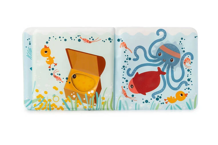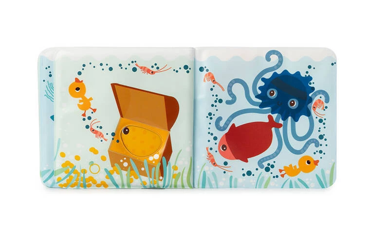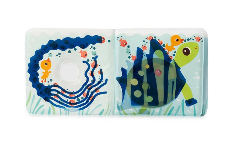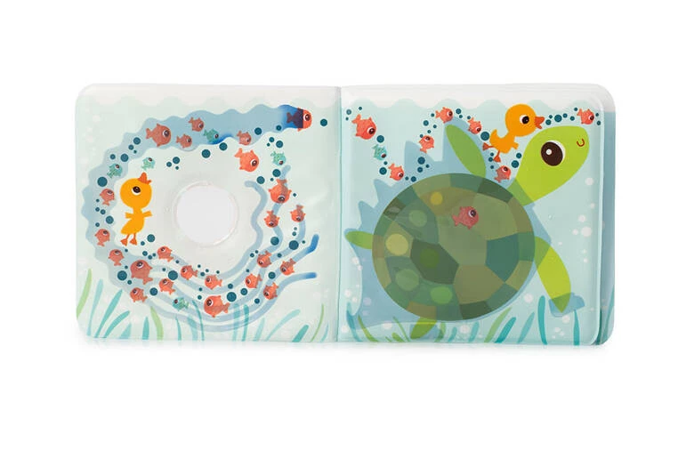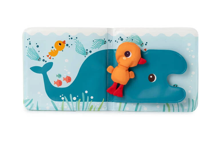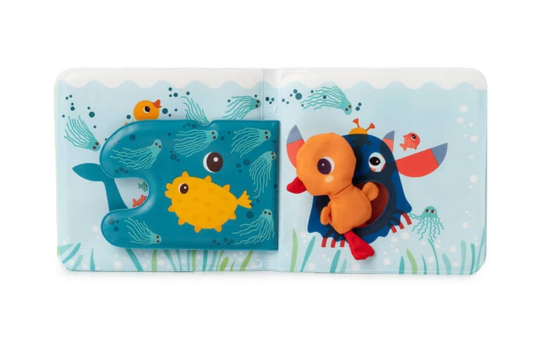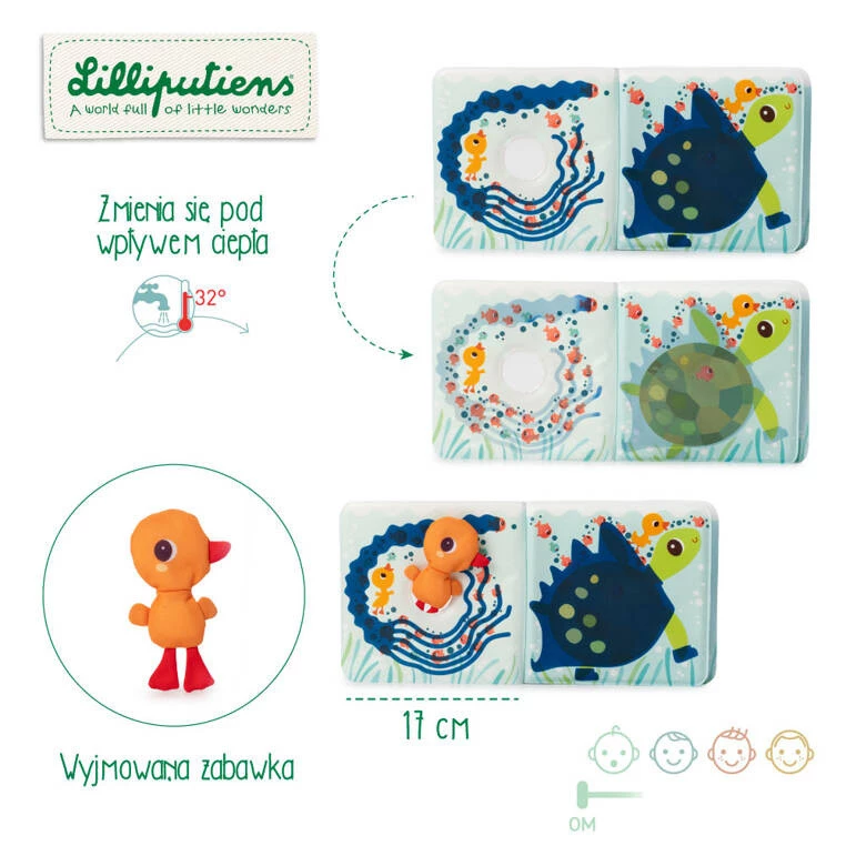 Niezwykła książeczka do kąpieli z kolekcji Kaczorek Gaspard belgijskiej marki Lilliputiens jest wykonana z wodoodpornego, przyjemnego w dotyku materiału. Opowiada o przygodach Kaczorka, który szuka swojej mamy, pokonując po drodze różne przeszkody, ma też „magiczne” właściwości. Po zanurzeniu w wodzie o temperaturze minimum 32°C niektóre postacie na stronach zmieniają się i ukazują swoje nowe oblicza. Książeczka posiada otwory, przez które można przekładać dołączoną do niej maskotkę – Gasparda, który może również pełnić funkcję kąpielowej gąbeczki. Jest fantastycznie ilustrowana, perfekcyjnie wykończona, z dbałością o każdy szczegół i bezpieczna dla dziecka. Rozwija spostrzegawczość i pobudza wyobraźnię.
