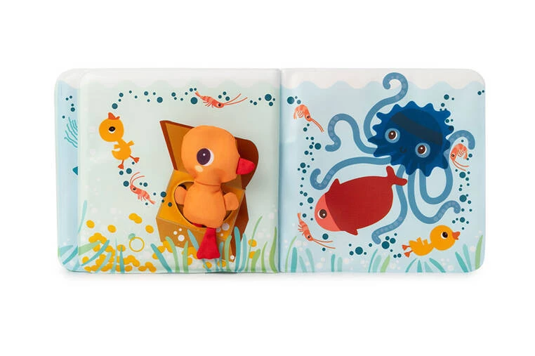 LILLIPUTIENS Magiczna książeczka do kąpieli z zabawką-gąbką Kaczorek Gaspard 0 m+