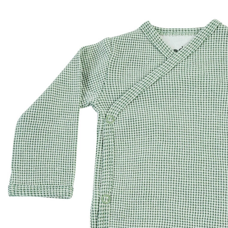 Body kopertowe niemowlęce z długim rękawem holenderskiej marki Lodger, wykonane z dzianiny o waflowym splocie. Leciutkie, oddychające, rozciągliwe i komfortowe. Idealne do spania i domowych aktywności, np. leżenia na brzuszku czy raczkowania. Wykonane w 100% z miękkiej bawełnianej dzianiny. Bezszwowy krój sprawia, że nie uciska malucha, a więcej miejsca w dolnej części – że dobrze się układa wokół pieluszki. Zatrzaski na boku i w kroku ułatwiają zakładanie i zdejmowanie ubranka. Do tego produktu możesz dobrać inny z tej samej kolekcji lub w tym samym kolorze. Produkt można prać w 60℃ w trybie delikatnym.