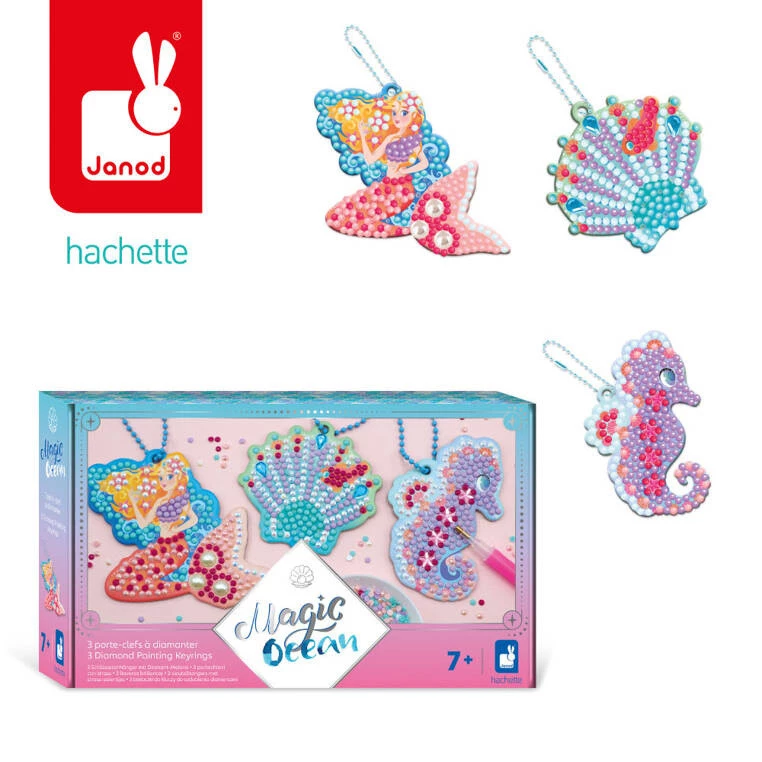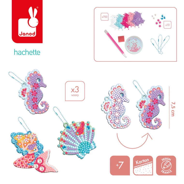 Janod Zestaw kreatywny do tworzenia breloczków Malowanie diamentami Magiczny ocean 7+