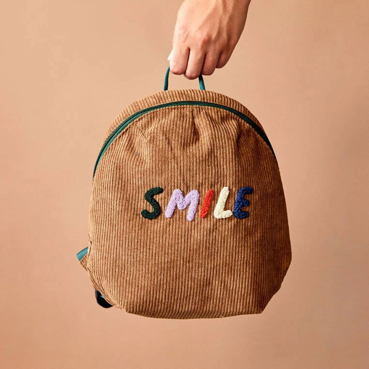 Lassig Plecak do przedszkola dla przedszkolaka sztruks Little Gang Smile caramel