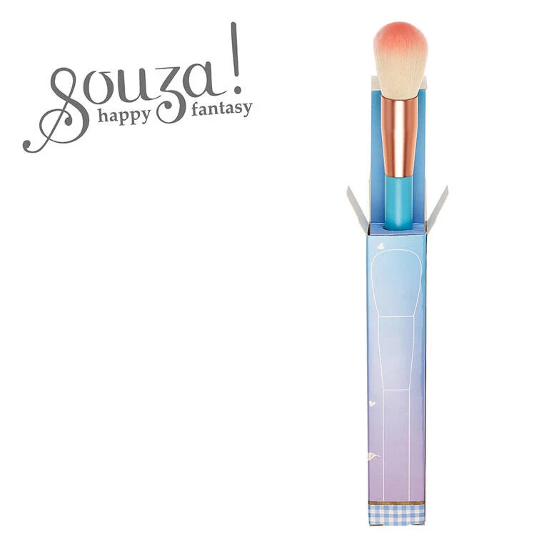Duży pędzelek w rozmiarze L do makijażu dla dzieci holenderskiej marki Souza! W kolorze jasnoturskusowym i różowego złota. Miękki, delikatny i niepodrażniający skóry. Idealny do wykonywania pierwszego makijażu, zabawy w salon kosmetyczny oraz jako stylowy prezent. Zapakowany w urocze kartonowe pudełeczko, które może też pełnić rolę pojemniczka na pędzelki.