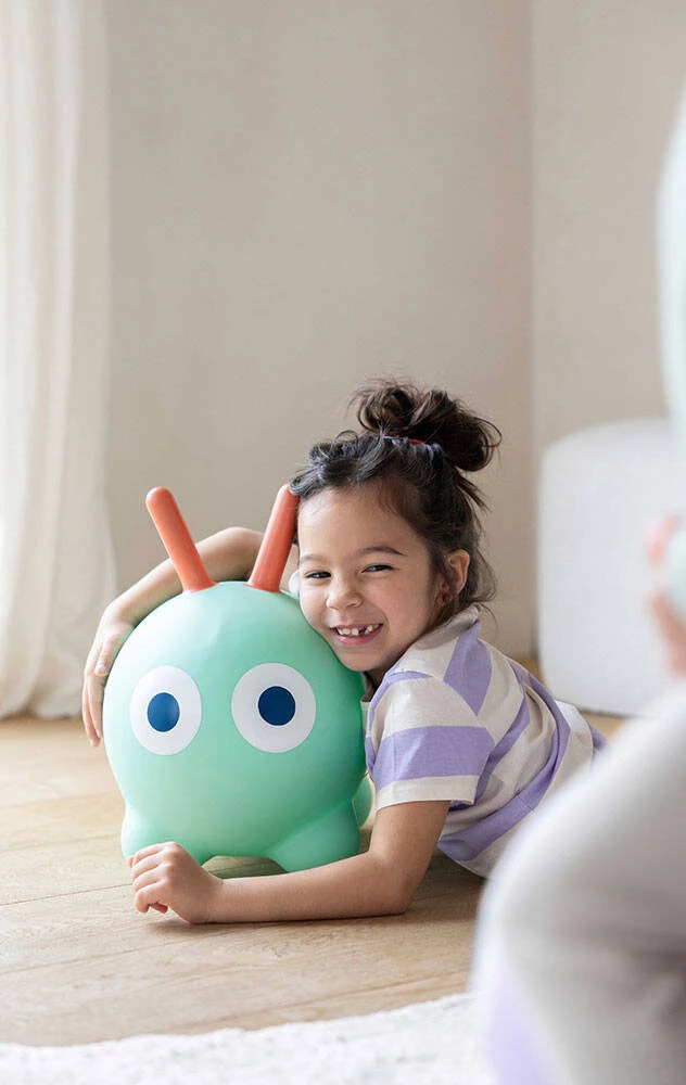Oryginalny, sporych rozmiarów dmuchany skoczek Skippi belgijskiej marki Quut to świetna i rozwojowa rozrywka dla aktywnych maluchów. Idealny do domu, ogrodu lub na taras. Łatwy do napompowania (pompka w zestawie) i transportu. Skoczek przeznaczony jest dla dzieci od 1. roku życia (siedzisko na wysokości 25 cm). Wykonany został z bardzo wytrzymałego winylu, zachwyca niebanalnym designem i kolorystyką. Ma kształt wydłużonej (idealnej do siedzenia) uroczej gąsienicy z długimi czułkami, które mogą służyć za poręczne uchwyty podczas zabawy oraz piękne, intensywne kolory: jest miętowy, a jego czułka – koralowe. Zabawka nadaje się idealnie do treningu równowagi, panowania nad własnym ciałem, koordynacji ruchowej i siły mięśni. Nadaje się także do relaksu na świeżym powietrzu. Pobudza wyobraźnię i kreatywność, zachęca do aktywności, zdobywania nowych doświadczeń i umiejętności.
