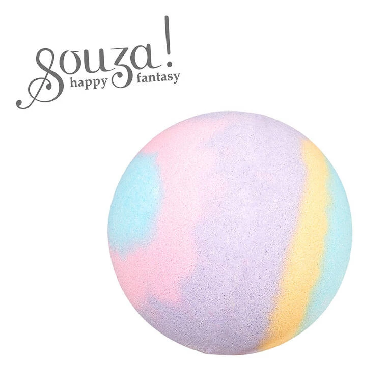 Musująca kula do kąpieli dla dzieci holenderskiej marki Souza! w pięknych kolorach (turkusowo-różowo-fioletowo-pomarańczowa), wykonana na bazie naturalnych minerałów.