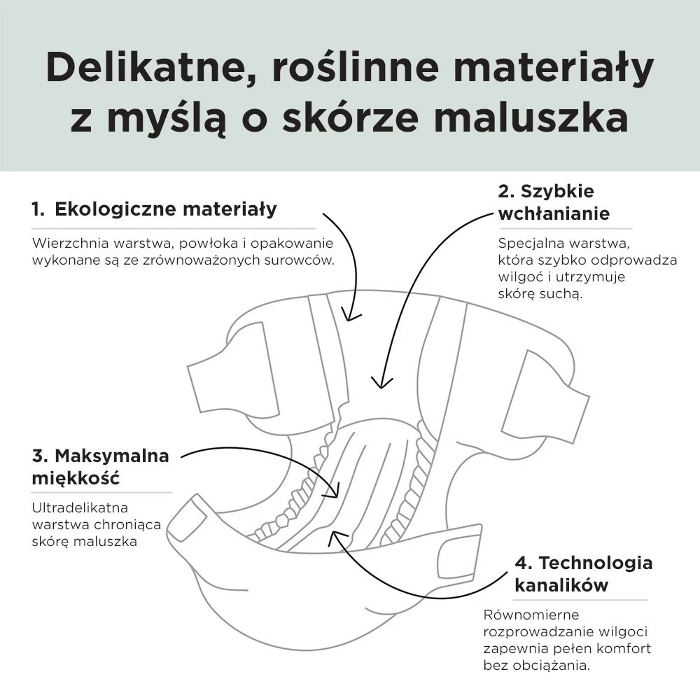 z zaawansowaną opatentowaną technologią zapewniającą, że pupa dziecka pozostaje w suchej wygodzie 12 godzin.